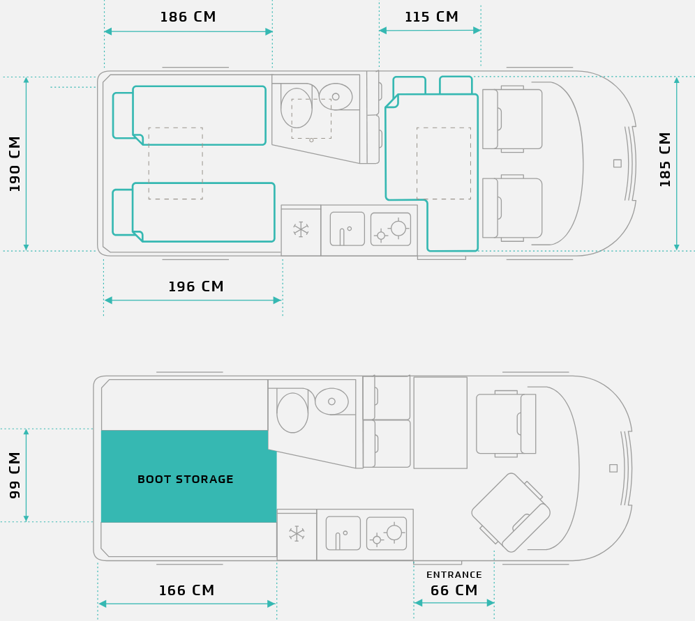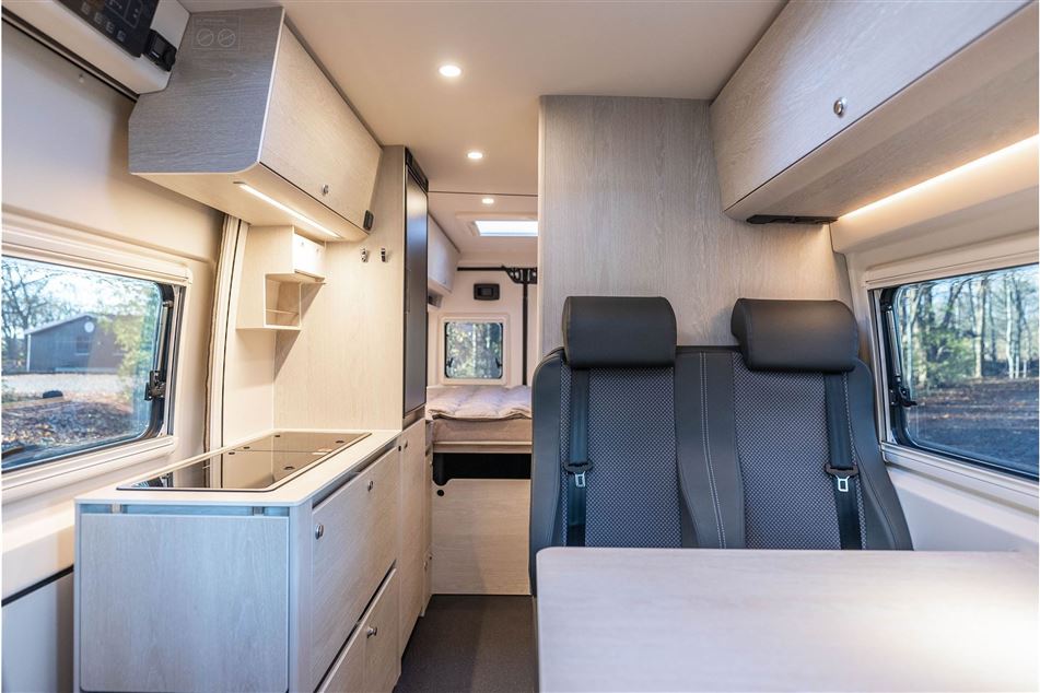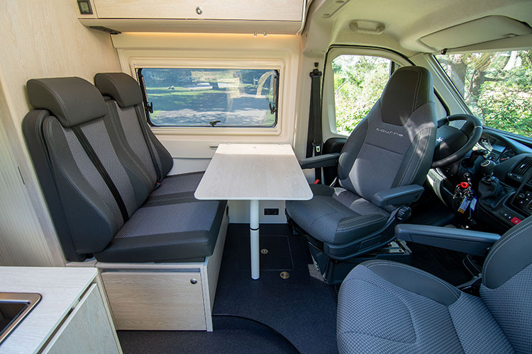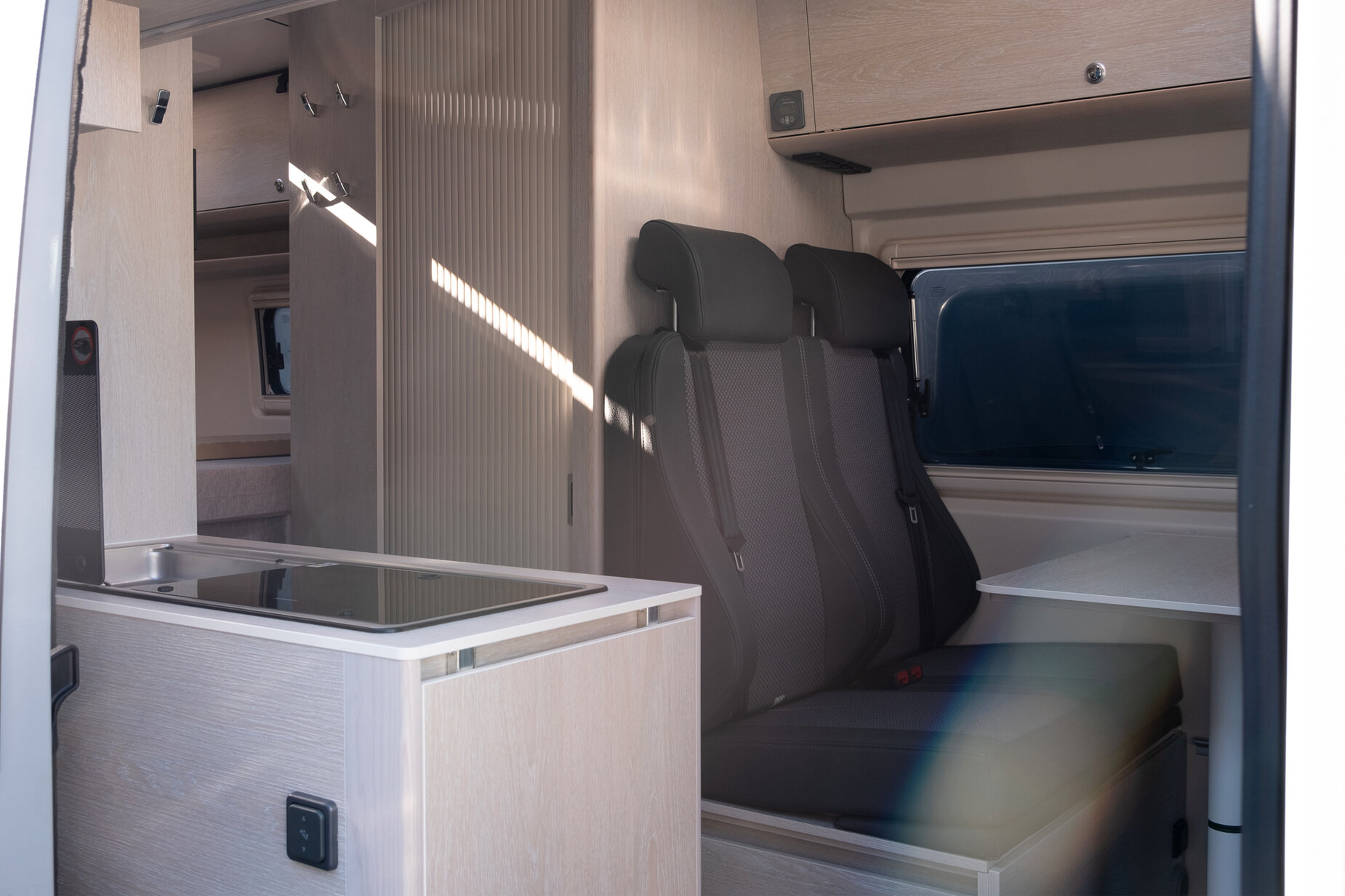 Ima vse kar imajo večji avtodomi in kar potrebujete za udobno potovanje. V zadnjem delu ima vzdolžno postavljeno udobno posteljo, v sprednjem delu pa se prečno posteljo sestavi iz sedežnih elementov in je primerna za dva otroka. Zadnja pa je namenjena odraslim oz. starejšim. Avtodom je povišan, tako da je notranja stojna višina 218 cm. Kuhinja je opremljena z 90 l kompresorskim hladilnikom in plinskim kuhalnikom z dvema gorilnikoma in je praktično zasnovana. Jedilna garnitura je sestavljena iz ergonomske sedežne klopi in dveh vrtljivih prednjih sedežev.